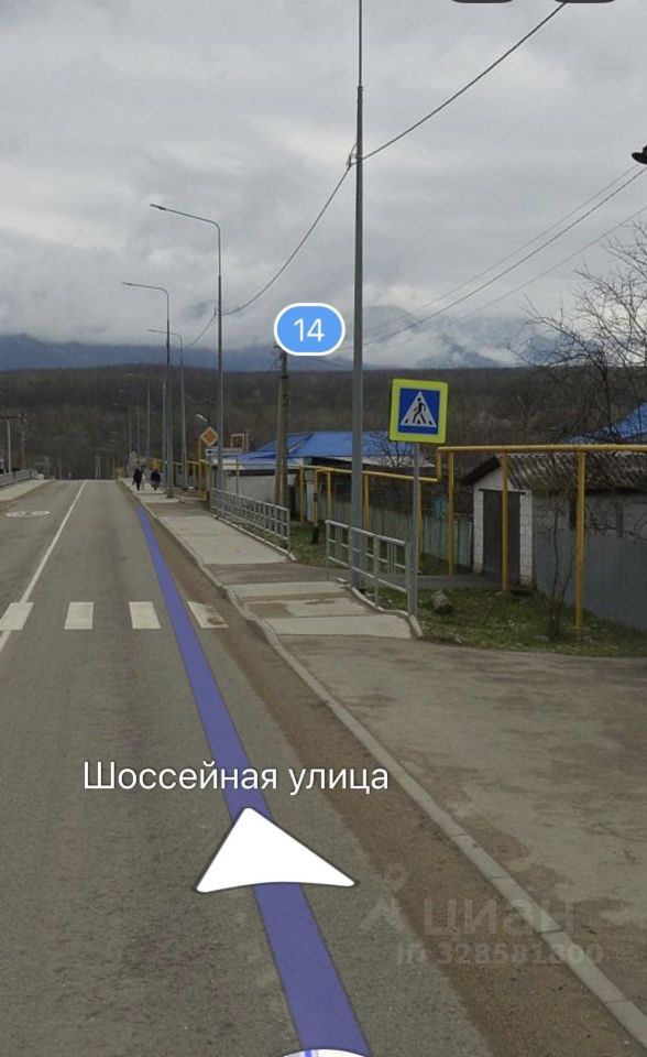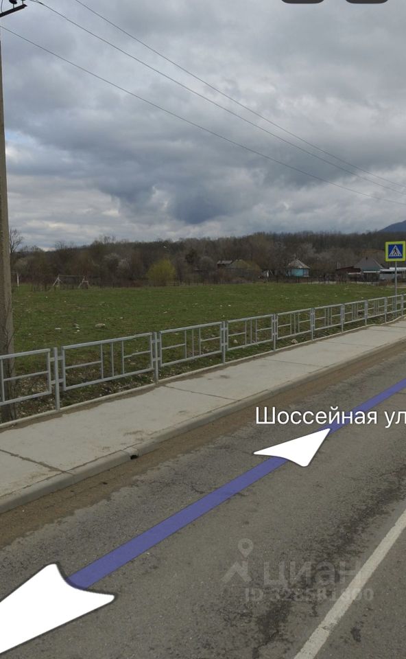 Панорамный вид на горы. Возле участка проходит центральная дорога в селе. Также строится автодорога Черниговское- Дагомыс. На участке строится забор.