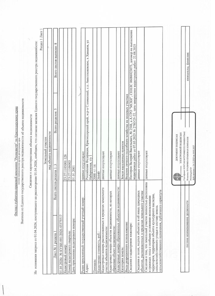 Земельный участок, расположенный по адресу: Российская Федерация, Краснодарский край, Славянский муниципальный район, Анастасиевское сельское поселение, х. Ханьков, ул. Набережная, земельный участок 1.