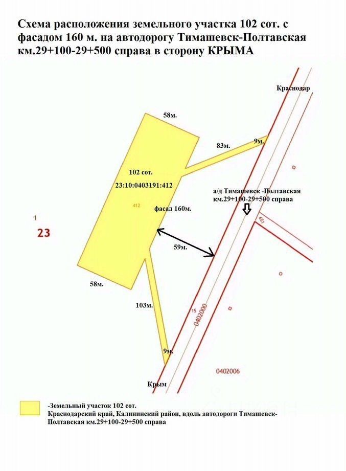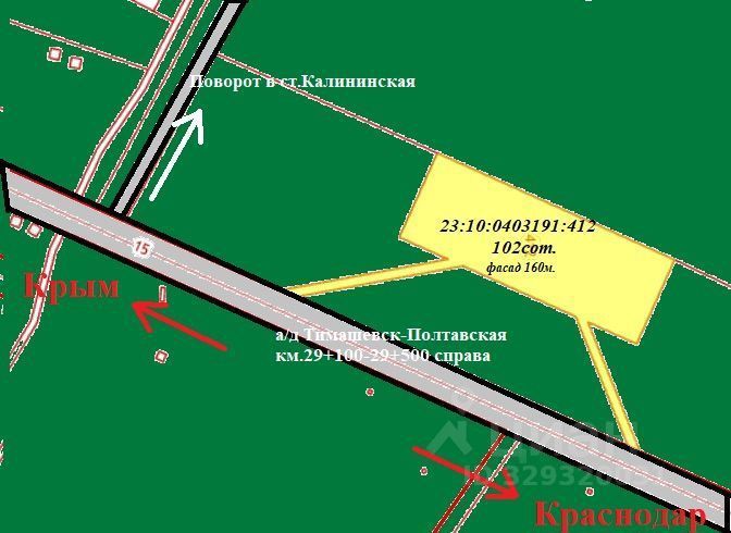 Адрес: Краснодарский край, р-н Калининский, вдоль автодороги Тимашевск-Полтавская км.29+100-29+500 справа.