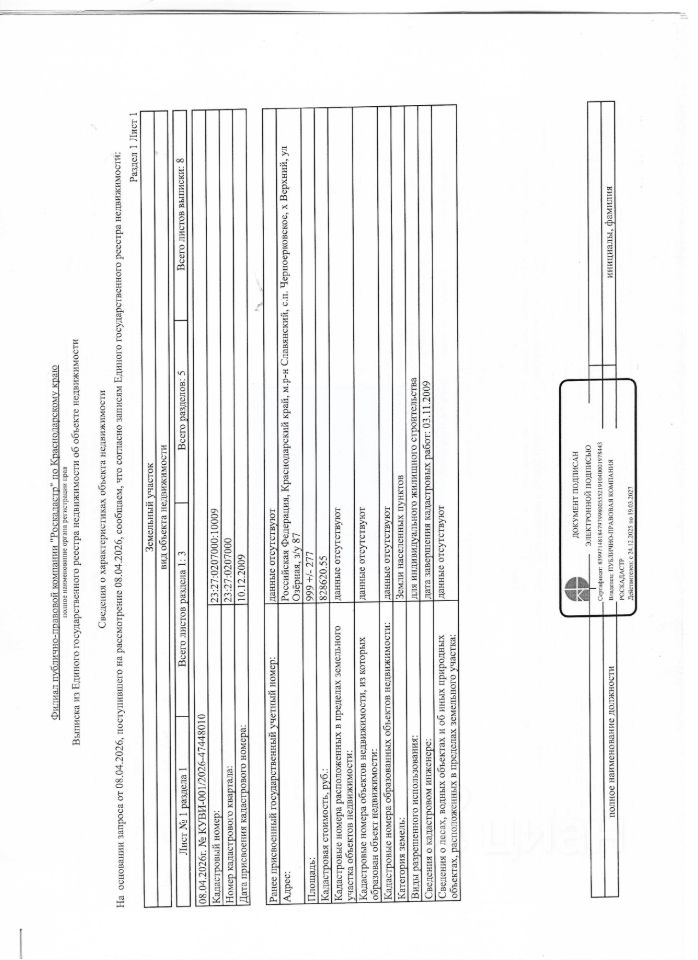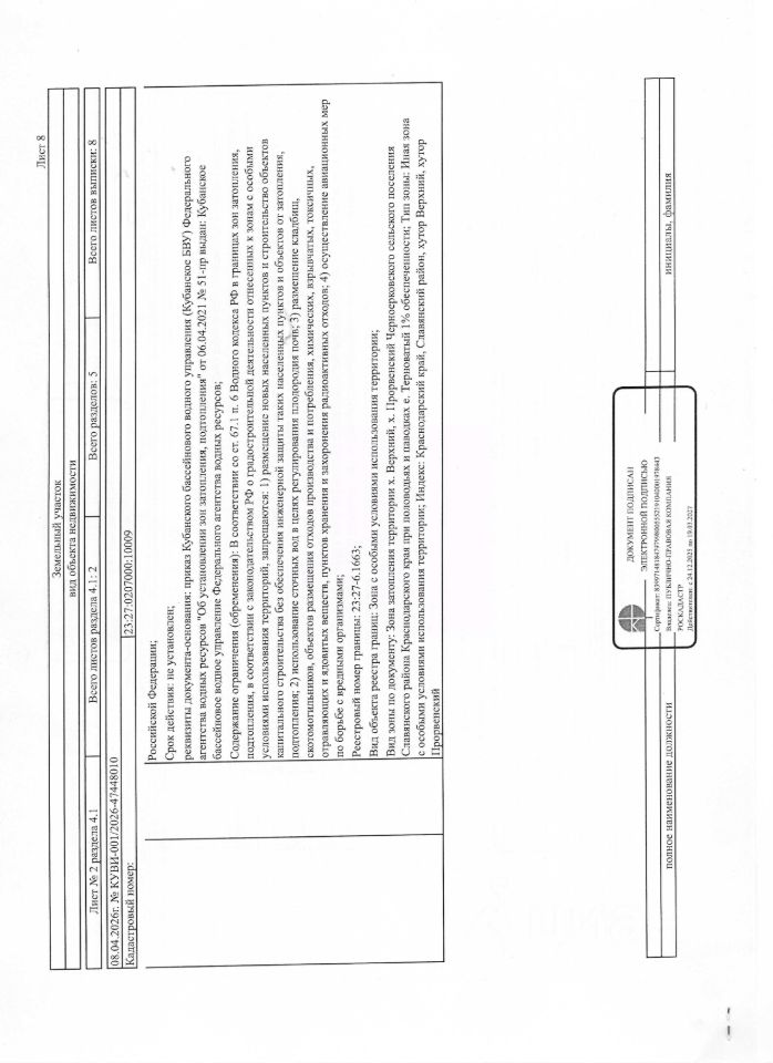 Земельный участок, расположенный по адресу: Российская Федерация, Краснодарский край, Славянский муниципальный район, сельское поселение Черноерковское, х. Верхний, ул. Озерная, земельный участок 87