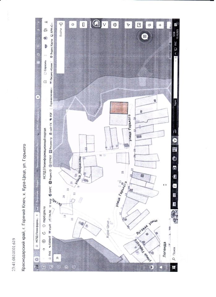 Земельный участок с кадастровым номером 23:41:0810001:619, имеющий адресный ориентир: Краснодарский край, г. Горячий Ключ, х. Кура-Цеце, ул. Горького, площадью 2400 кв.м, категория земель земли населенных пунктов, разрешенное использование для ведения личного подсобного хозяйства (приусадебный земельный участок)