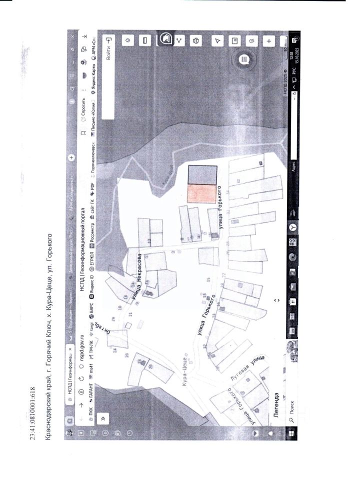 Земельный участок с кадастровым номером 23:41:0810001:618, имеющий адресный ориентир: Краснодарский край, г. Горячий Ключ, х. Кура-Цеце, ул. Горького, площадью 2400 кв.м, категория земель земли населенных пунктов, разрешенное использование для ведения личного подсобного хозяйства (приусадебный земельный участок)