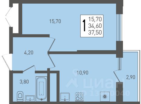 Общая площадь37,5 м²