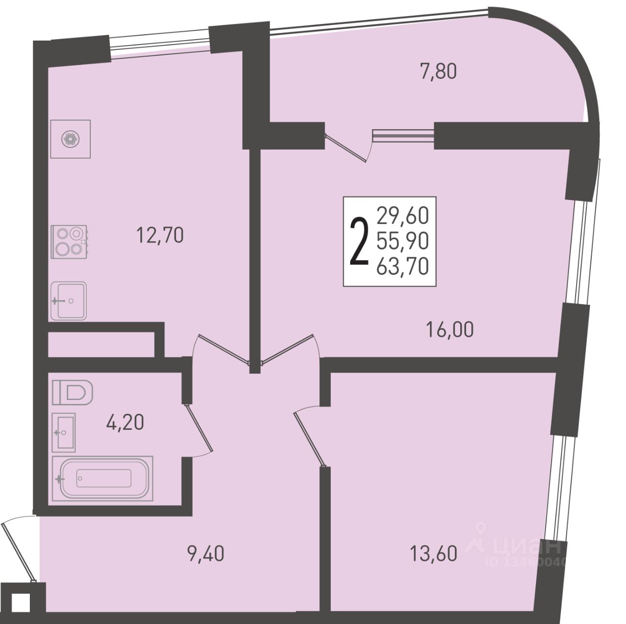 Общая площадь63,7 м²