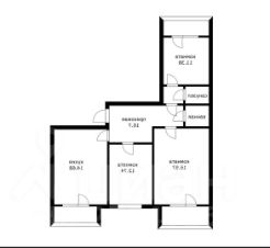 В квартире 3 балкона, окна выходят на две стороны, сан узел раздельный, большая кухня 15 м2.