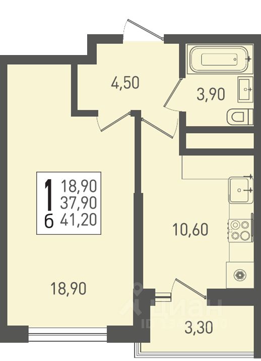 Общая площадь41,2 м²