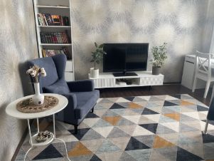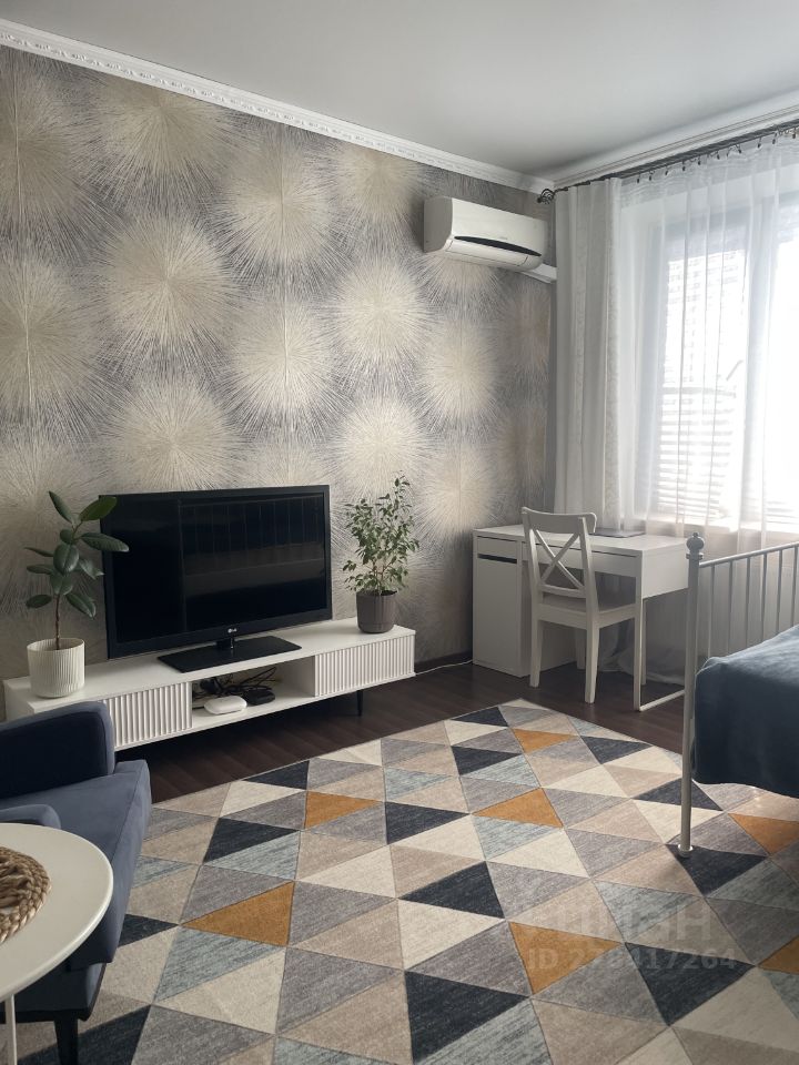 Окна выходят на солнечную сторону. Сделан косметический ремонт. Комната 15 м2. Кухня 9 м2. Ванная 4 м2. Общая площадь 38,1 м2. Санузел совмещённый, установлен кондиционер.