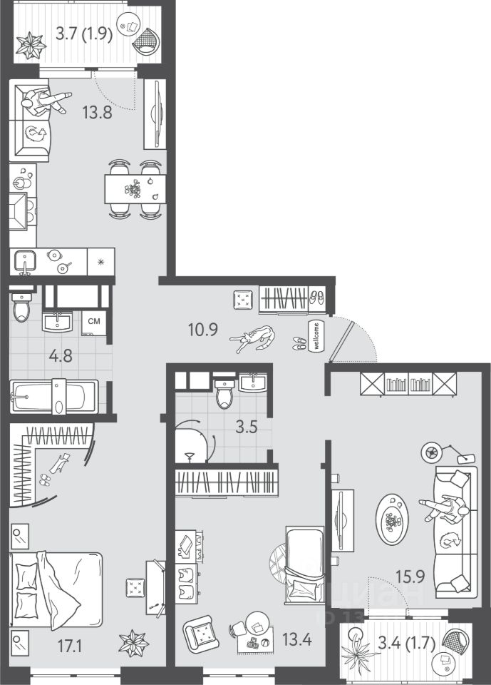 Продаётся квартира бизнес-класса от застройщика "Семья"