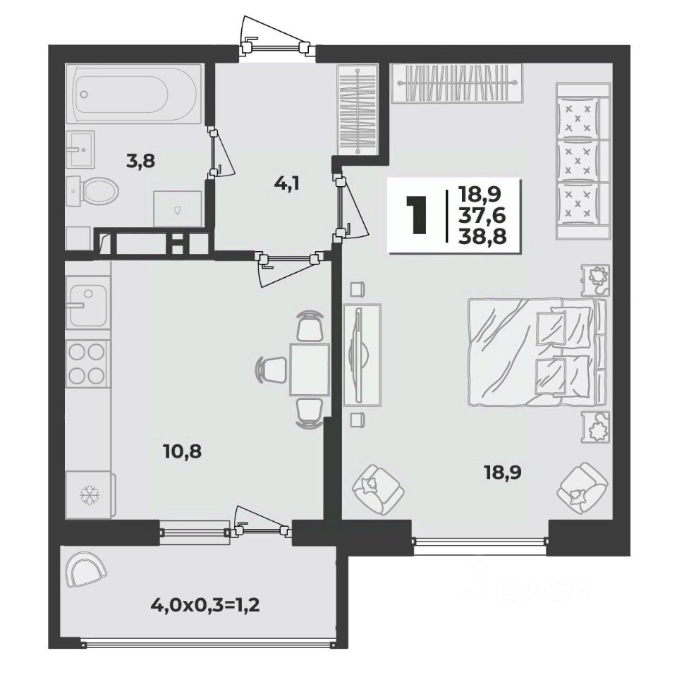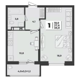 38,8 м²