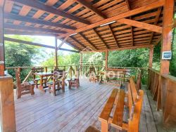 Территория оборудована детской площадкой, мангальной зоной, беседкой и парковкой.