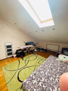1-ый этаж стены из декоративной штукатурки ,2-ой этаж обои ,потолок везде из гипсокартона,полы ламинат ,паркет,итальянская плитка.