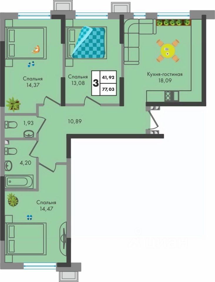 3-комнатная квартира по цене 2-комнатной в жилом комплексе Зеленая территория от надежного застройщика СЗ Флагман в Краснодаре. Покупка квартиры в ЖК Зелёная территория это : дворы без машин с большими детскими площадками; баланс природы и городской среды; библиотека, конгресс-центр, фитнес-центр; много парковочных мест, наземная многоуровневая парковка; выделенная велосипедная дорожка на длинной прогулочной аллее в собственном закрытом от посторонних парке; зарядные станции для автомобилей; спортивные площадки для детей и взрослых; собственный парк на территории комплекса - 1,2 Га; ТРК Красная площадь, Леруа Мерлен - 10 минут на машине; школа в 2 минутах ходьбы от дома; 3 минуты до детского сада; рядом находятся ледовый дворец Iсе Раlасе, спортивный комплекс "Баскет Холл", школа ЦСК и теннисные корты; выезд на Ейское шоссе - дорога на море за час без пробок. За более чем 20 лет группа компаний Флагман построила: 9 ЖК, 4 200 квартир 24 многоэтажных дома 2 коттеджных посёлка 7 коммерческих БЦ Подберите 3-комнатную квартиру по вашим параметрам в ЖК Зелёная территория от застройщика СЗ Флагман. Звоните или нажимайте Заказать звонок - мы сформируем подборку планировок, просчитаем стоимость ежемесячного платежа и пришлем вам.
