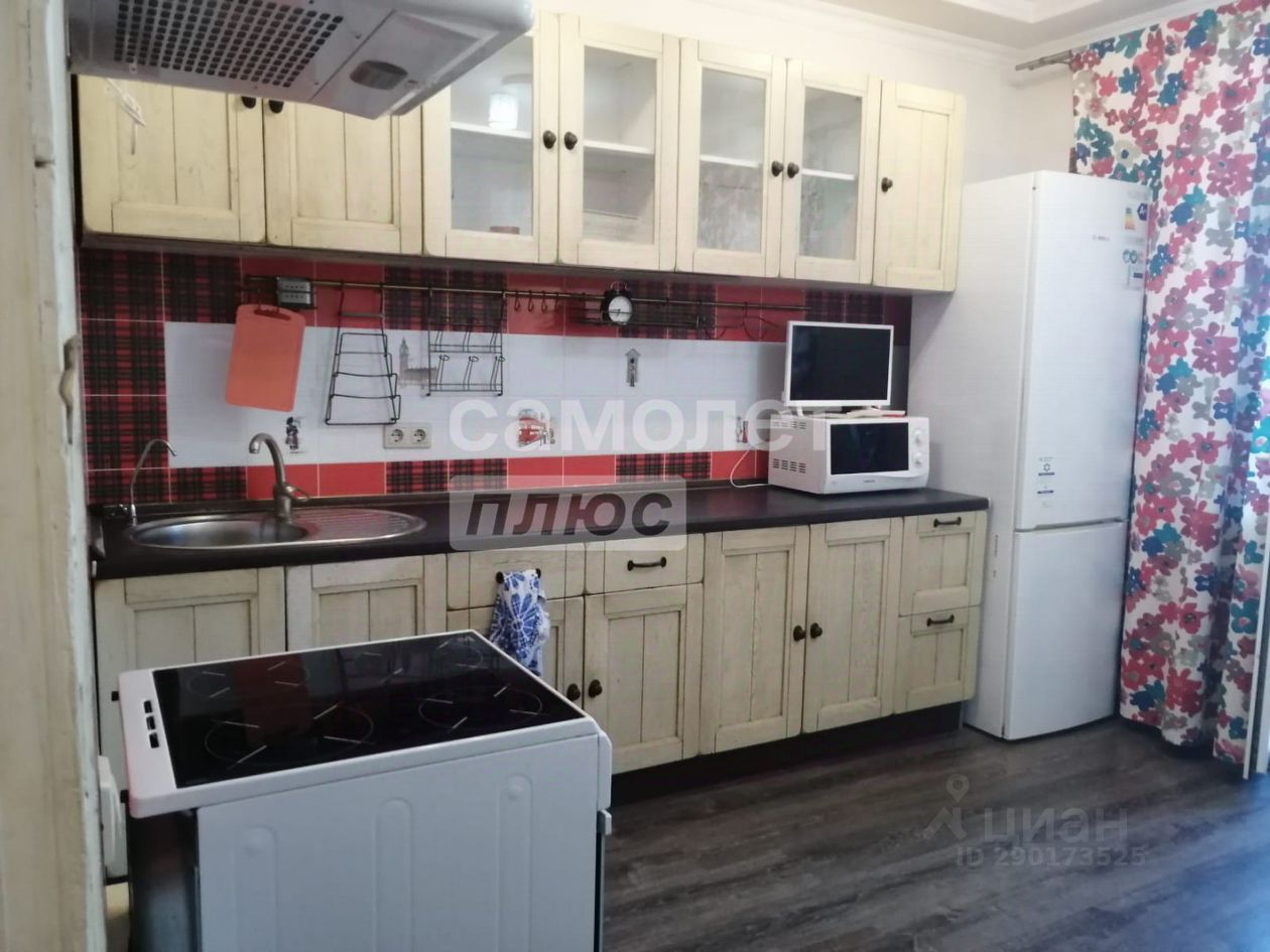 — имеется вся необходимая мебель: кухонный гарнитур, электрическая плита, микроволновая печь, диван, кровать, тумбочка, стол, стиральная машина, прихожая.