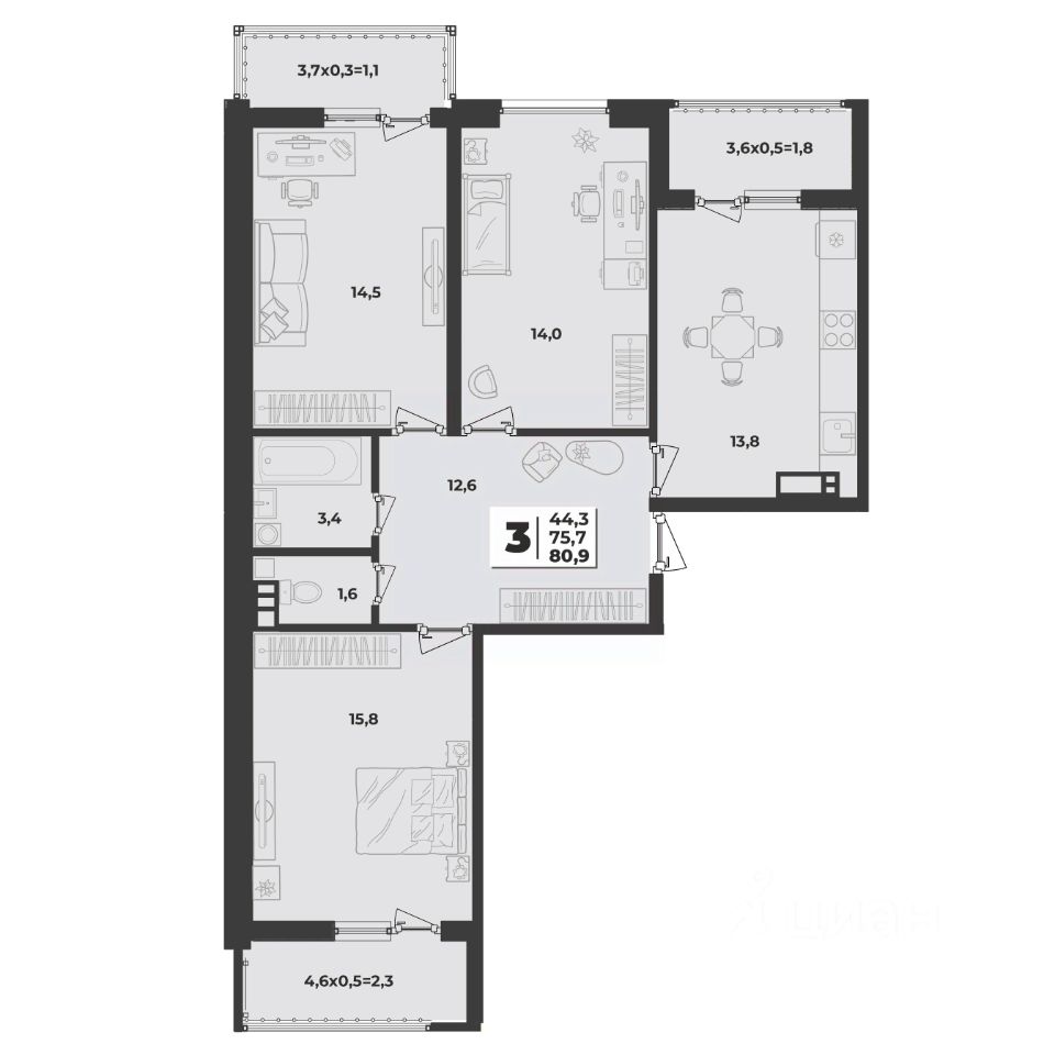 Общая площадь80,9 м²