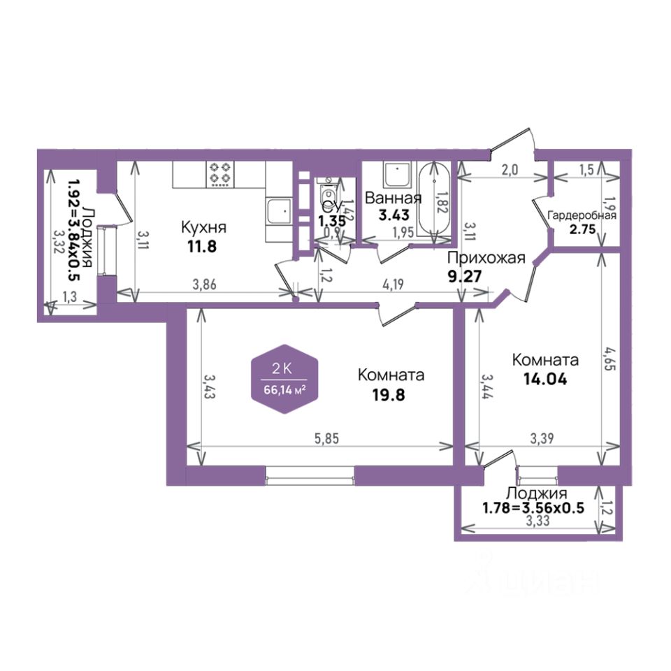 Общая площадь66,14 м²