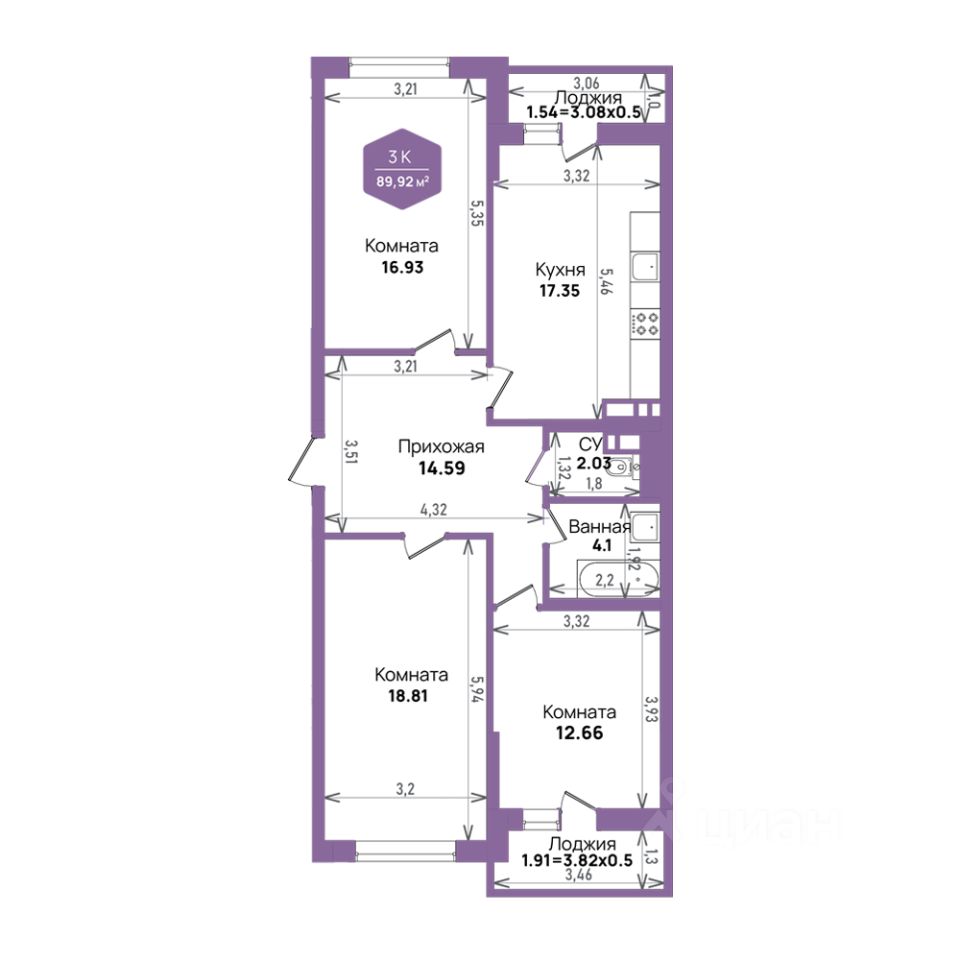 Общая площадь89,92 м²