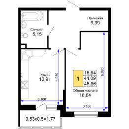 Продаётся 1-комнатная квартира в строящемся доме (Литер 10), срок сдачи: IV-кв. 2025, общей площадью 45.86 кв.м., на 4 этаже. Ипотека от 5,9% на квартиры от ССК на весь срок кредитования
