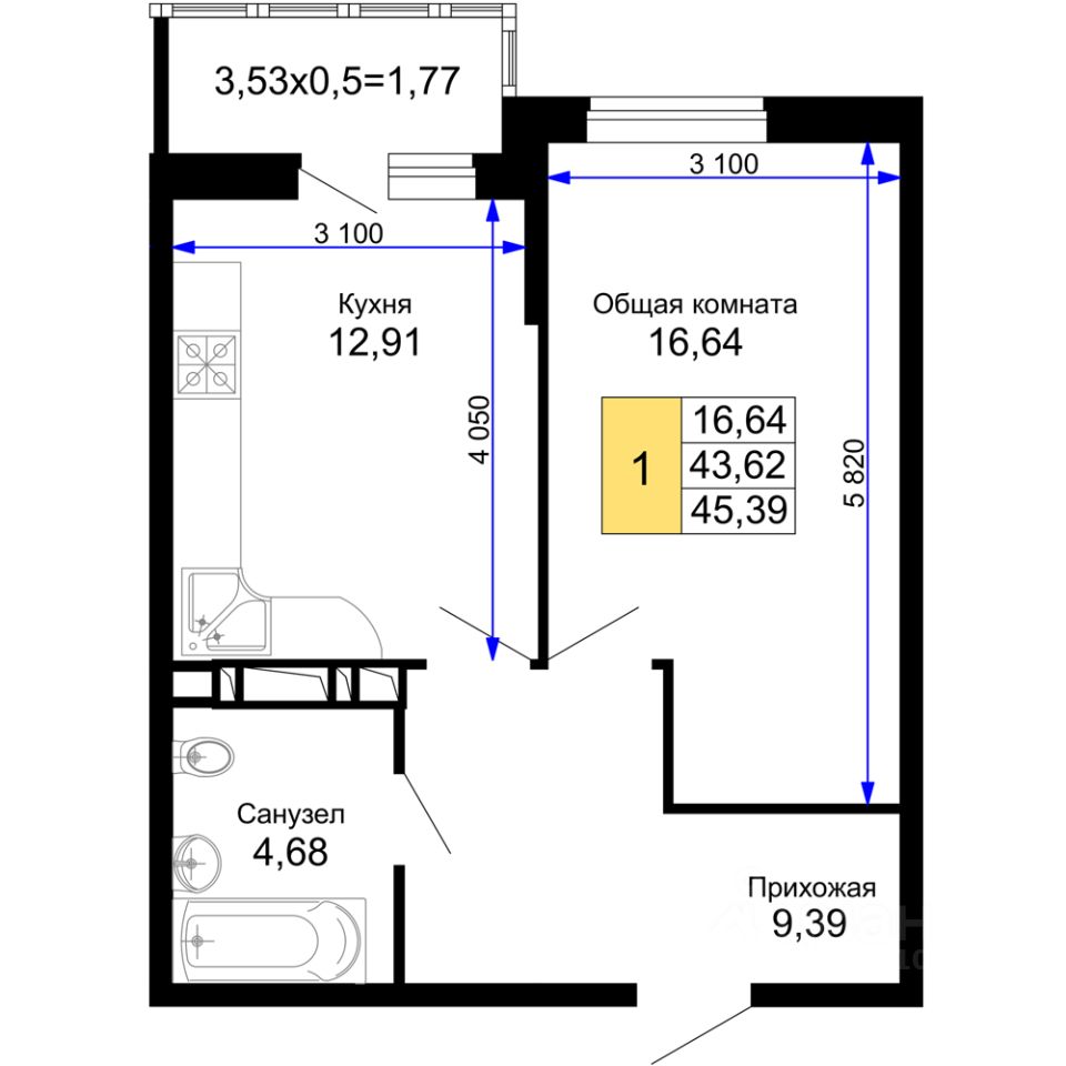 Продаётся 1-комнатная квартира в строящемся доме (Литер 10), срок сдачи: IV-кв. 2025, общей площадью 45.39 кв.м., на 6 этаже. Ипотека от 5,9% на квартиры от ССК на весь срок кредитования