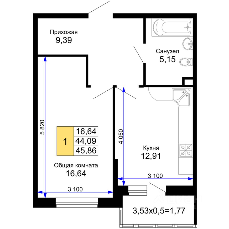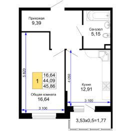 Продаётся 1-комнатная квартира в строящемся доме (Литер 10), срок сдачи: IV-кв. 2025, общей площадью 45.86 кв.м., на 4 этаже. Ипотека от 5,9% на квартиры от ССК на весь срок кредитования