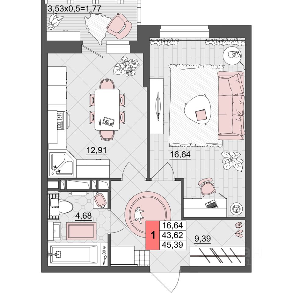 Продаётся 1-комнатная квартира в строящемся доме (Литер 10), срок сдачи: IV-кв. 2025, общей площадью 45.39 кв.м., на 10 этаже. Ипотека от 5,9% на квартиры от ССК на весь срок кредитования