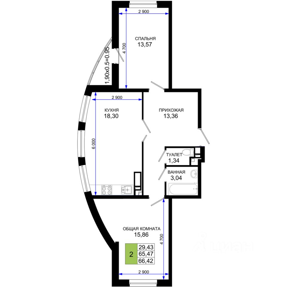 Продаётся 2-комнатная квартира в строящемся доме (Литер 11), срок сдачи: IV-кв. 2025, общей площадью 66.42 кв.м., на 2 этаже. Ипотека от 5,9% на квартиры от ССК на весь срок кредитования