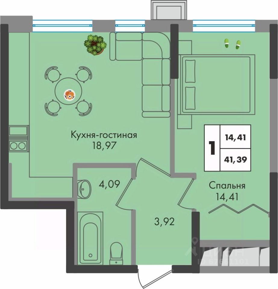 Общая площадь41,39 м²