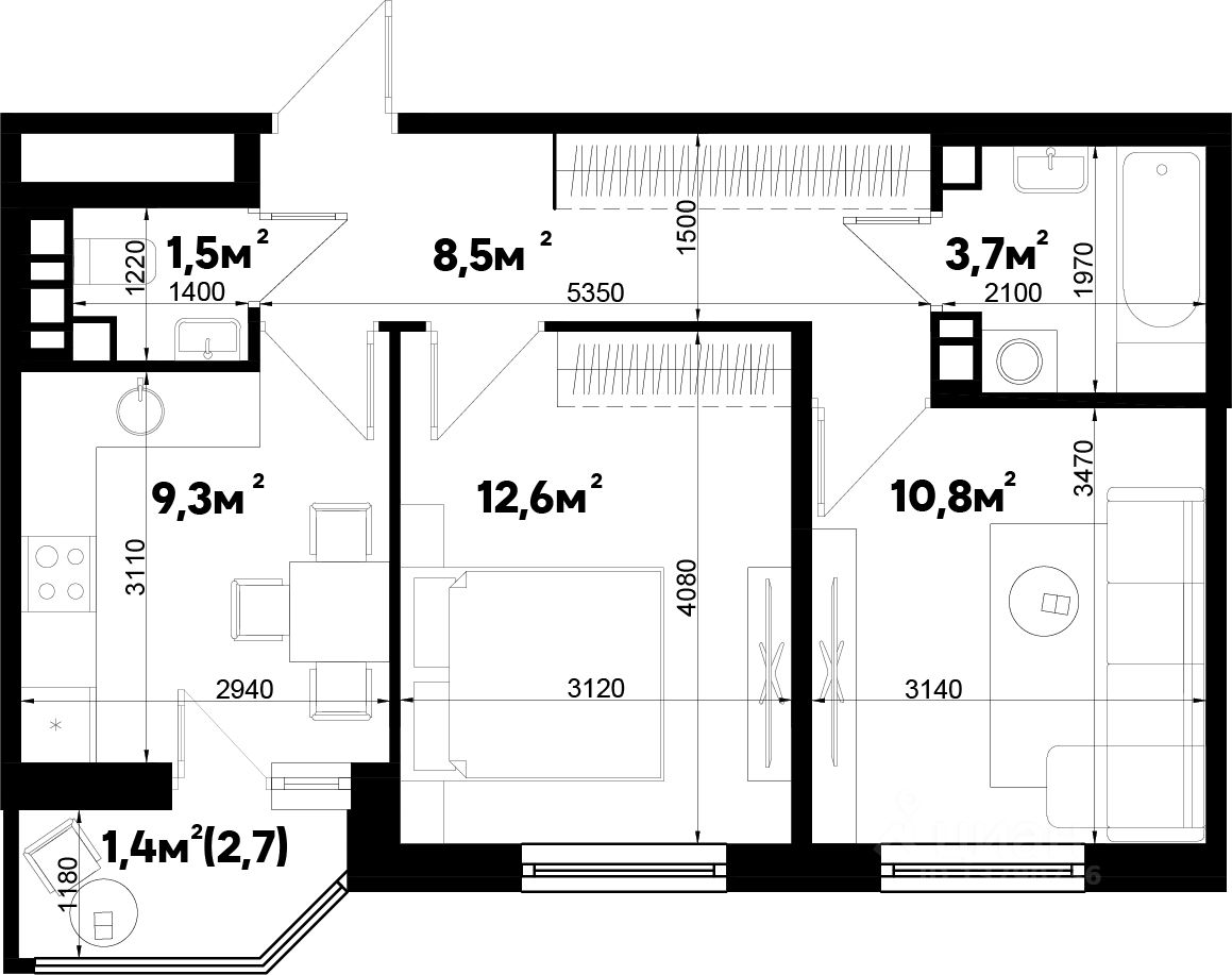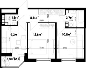 Продаётся 2-комнатная квартира в сданном доме (Литер 2.7), срок сдачи: IV-кв. 2024, общей площадью 48.4 кв.м., на 1 этаже. Расположение, транспортная доступность