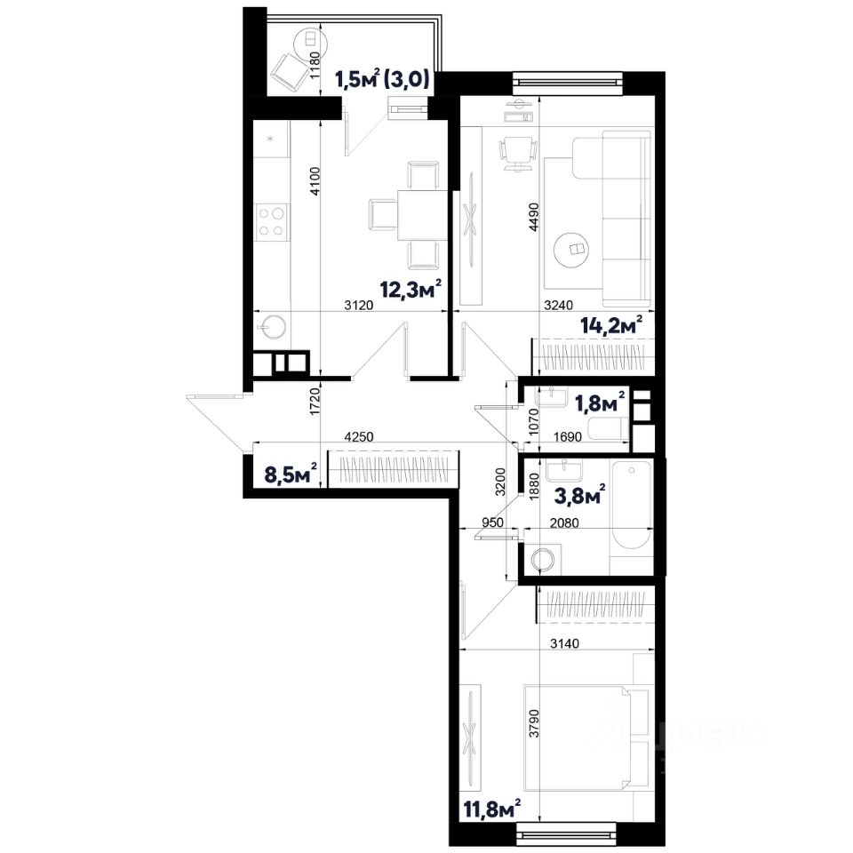 Продаётся 2-комнатная квартира в сданном доме (Литер 2.7), срок сдачи: IV-кв. 2024, общей площадью 55 кв.м., на 2 этаже. Расположение, транспортная доступность