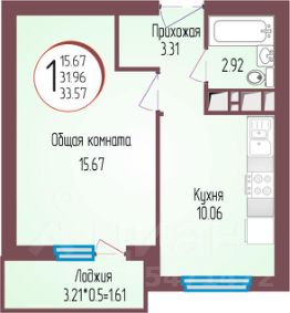 Площадь квартиры 35 квадратных метров с лоджией. Жилая площадь - 15,67 квадратных метров. Есть лифт. В квартире никто не проживает.