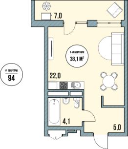 22 м²