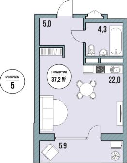 Жилая площадь22 м²