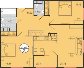 Общая площадь67,8 м²