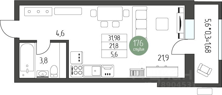 Жилая площадь21,8 м²