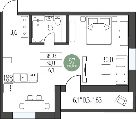 Общая площадь38,93 м²