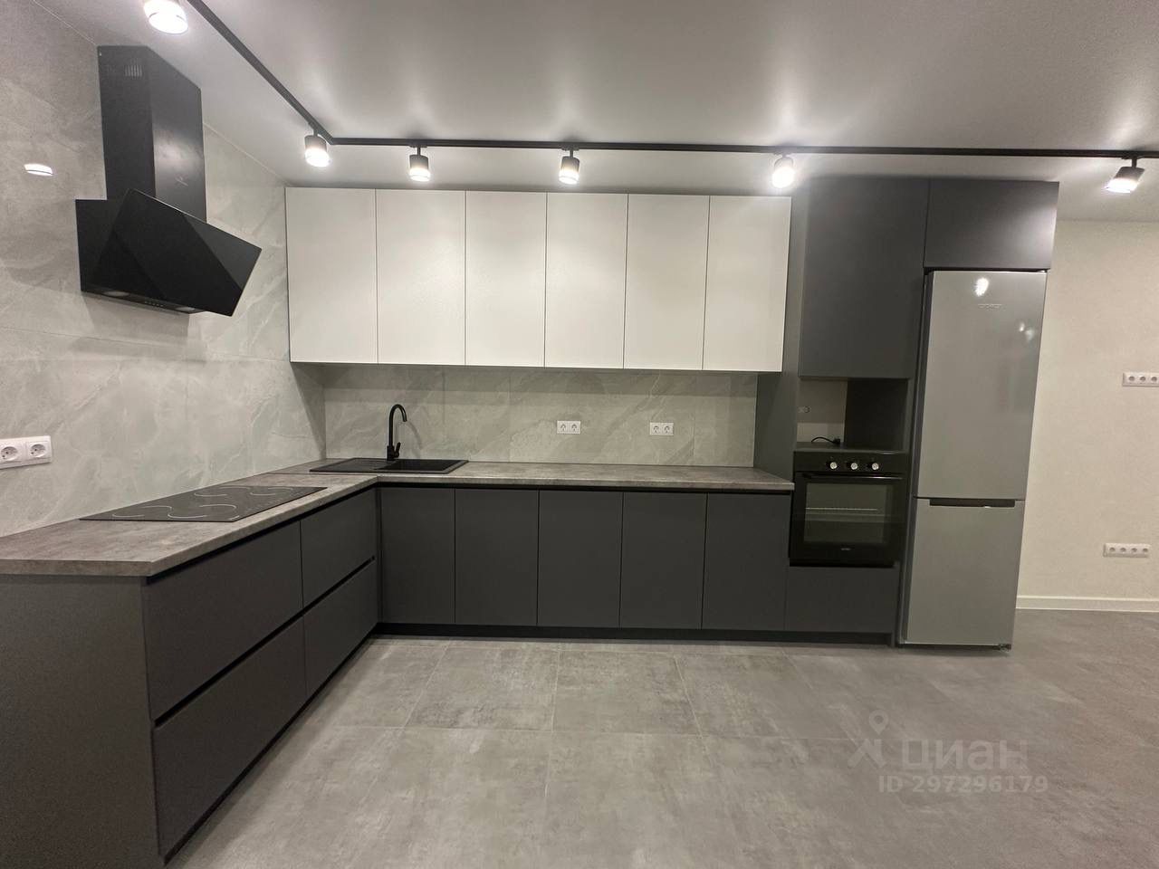 В квартире сделан качественный ремонт. На полу крупноформатный керамогранит цвета под бетон, в спальнях водостойкий премиальный ламинат, на стенах моющиеся, светлые обои. В просторной кухне - гостиной установлен кухонный гарнитур с уже встраиваемой техникой: холодильник, варочная панель и духовой шкаф, посудомоечная машина, вытяжка. Кухня выполнена по индивидуальному заказу в современном стиле! В комнате достаточно места чтобы разместить обеденную зону, и зону отдыха с большим диваном, мультимедийной TV системой. Из гостиной можно попасть в спальню через балконную зону.