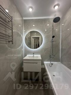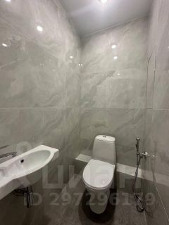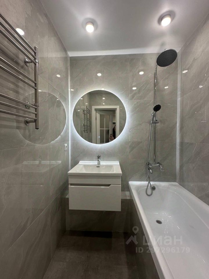 Сан узлы раздельные. На стенах мраморный керамогранит, белая акриловая ванная, широкая раковина с тумбой, электрический полотенцесушитель, душевая стойка с тропическим душем, над раковиной стильное, круглое зеркало с подсветкой! В туалете установлена мини раковина и унитаз.