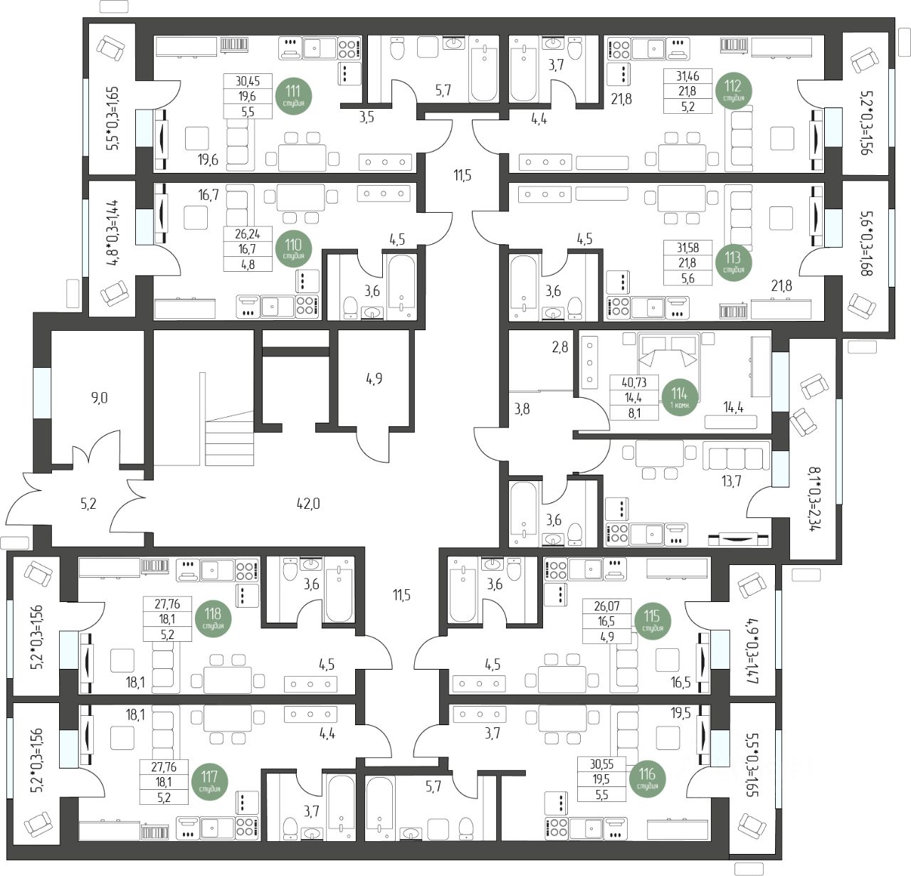 40,73 м²