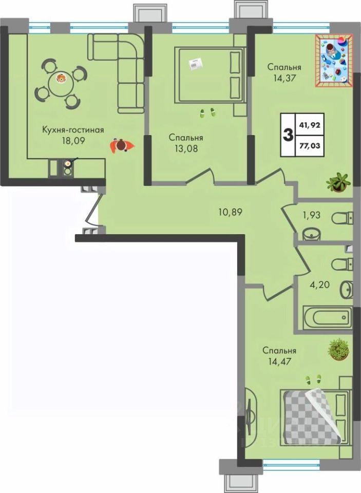 3-комнатная квартира по цене 2-комнатной в жилом комплексе Зеленая территория от надежного застройщика СЗ Флагман в Краснодаре. Покупка квартиры в ЖК Зелёная территория это : дворы без машин с большими детскими площадками; баланс природы и городской среды; библиотека, конгресс-центр, фитнес-центр; много парковочных мест, наземная многоуровневая парковка; выделенная велосипедная дорожка на длинной прогулочной аллее в собственном закрытом от посторонних парке; зарядные станции для автомобилей; спортивные площадки для детей и взрослых; собственный парк на территории комплекса - 1,2 Га; ТРК Красная площадь, Леруа Мерлен - 10 минут на машине; школа в 2 минутах ходьбы от дома; 3 минуты до детского сада; рядом находятся ледовый дворец Iсе Раlасе, спортивный комплекс "Баскет Холл", школа ЦСК и теннисные корты; выезд на Ейское шоссе - дорога на море за час без пробок. За более чем 20 лет группа компаний Флагман построила: 9 ЖК, 4 200 квартир 24 многоэтажных дома 2 коттеджных посёлка 7 коммерческих БЦ Подберите 3-комнатную квартиру по вашим параметрам в ЖК Зелёная территория от застройщика СЗ Флагман. Звоните или нажимайте Заказать звонок - мы сформируем подборку планировок, просчитаем стоимость ежемесячного платежа и пришлем вам.