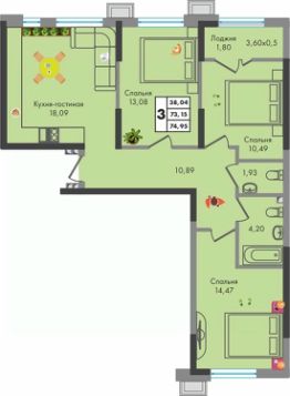 3-комнатная квартира по цене 2-комнатной в жилом комплексе Зеленая территория от надежного застройщика СЗ Флагман в Краснодаре. Покупка квартиры в ЖК Зелёная территория это : дворы без машин с большими детскими площадками; баланс природы и городской среды; библиотека, конгресс-центр, фитнес-центр; много парковочных мест, наземная многоуровневая парковка; выделенная велосипедная дорожка на длинной прогулочной аллее в собственном закрытом от посторонних парке; зарядные станции для автомобилей; спортивные площадки для детей и взрослых; собственный парк на территории комплекса - 1,2 Га; ТРК Красная площадь, Леруа Мерлен - 10 минут на машине; школа в 2 минутах ходьбы от дома; 3 минуты до детского сада; рядом находятся ледовый дворец Iсе Раlасе, спортивный комплекс "Баскет Холл", школа ЦСК и теннисные корты; выезд на Ейское шоссе - дорога на море за час без пробок. За более чем 20 лет группа компаний Флагман построила: 9 ЖК, 4 200 квартир 24 многоэтажных дома 2 коттеджных посёлка 7 коммерческих БЦ Подберите 3-комнатную квартиру по вашим параметрам в ЖК Зелёная территория от застройщика СЗ Флагман. Звоните или нажимайте Заказать звонок - мы сформируем подборку планировок, просчитаем стоимость ежемесячного платежа и пришлем вам.