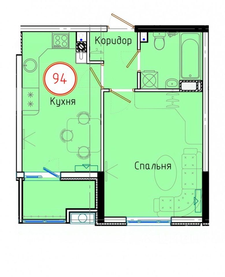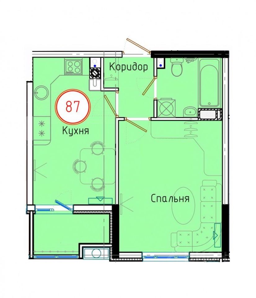 Продаётся 1-комнатная квартира в сданном доме (Дом 2/1), срок сдачи: IV-кв. 2023, общей площадью 39.8 кв.м., на 8 этаже.