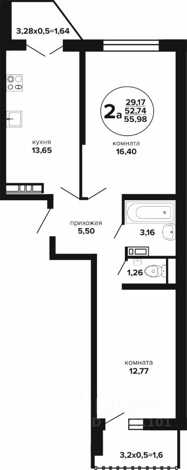 Общая площадь57,05 м²