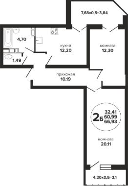 Общая площадь66,93 м²