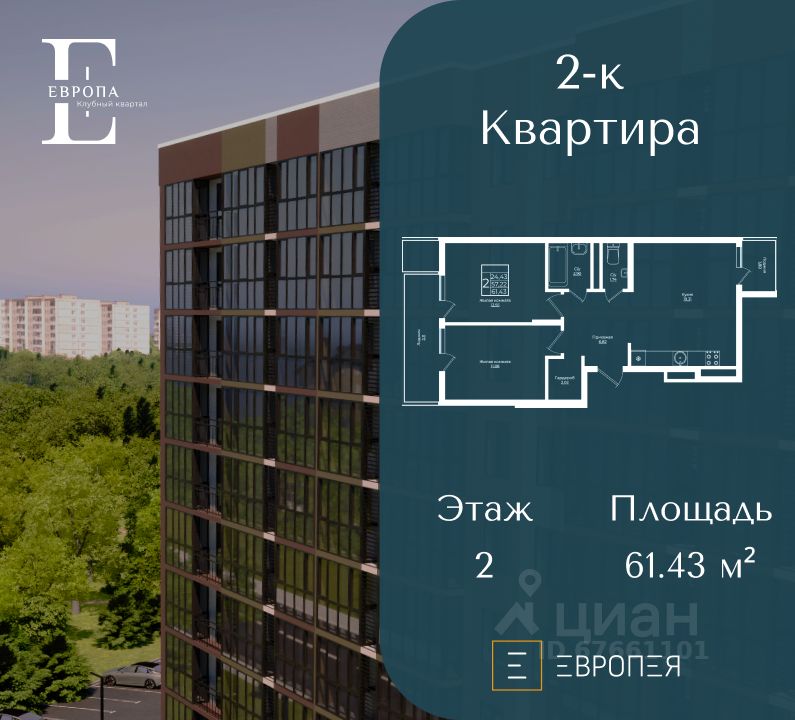 Клубный квартал Европа — уютный жилой район, гармонично сочетающий в себе яркие дизайнерские решения, прекрасную экологию и благоустроенные общественные пространства. Расположен в уникальной локации рядом с культовой "Немецкой Деревней". Всего за несколько минут вы сможете прогуляться до живописного Лебединого озера, площади с фонтаном и других знаковых мест этого уютного и развитого района. На территории квартала созданы все условия для комфортной жизни: развитая транспортная инфраструктура — как для владельцев автомобилей, так и для тех, кто предпочитает общественный транспорт. Внутри комплекса вас ждут современные детские и спортивные площадки, зоны отдыха и безопасные прогулочные маршруты. В районе установлена система видеонаблюдения, что гарантирует высокий уровень безопасности. Квартиры с смарт-планировками предоставляют полную свободу для воплощения ваших идей. Создайте пространство, отражающее ваш стиль и потребности, наслаждайтесь комфортом и индивидуальностью в каждом уголке вашей новой квартиры. Звоните прямо сейчас и станьте частью этого современного, безопасного и комфортабельного жилого квартала "Европа". Ваша новая квартира ждет именно вас! Стоимость является предварительной и может меняться в зависимости от выбранной ипотечной программы и дополнительных опций. Для уточнения стоимости необходимо обратиться в отдел продаж ГК "Европея".
