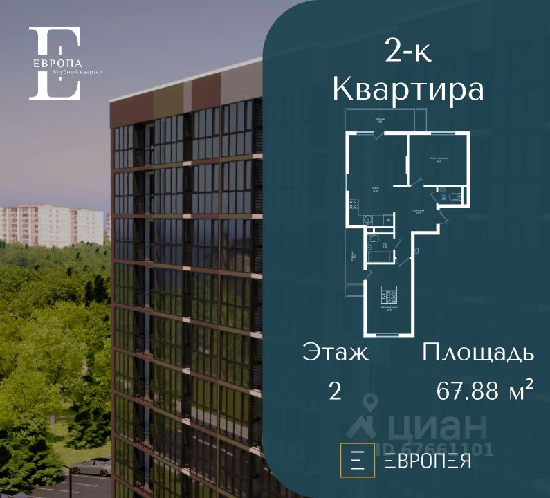 Клубный квартал Европа — уютный жилой район, гармонично сочетающий в себе яркие дизайнерские решения, прекрасную экологию и благоустроенные общественные пространства. Расположен в уникальной локации рядом с культовой "Немецкой Деревней". Всего за несколько минут вы сможете прогуляться до живописного Лебединого озера, площади с фонтаном и других знаковых мест этого уютного и развитого района. На территории квартала созданы все условия для комфортной жизни: развитая транспортная инфраструктура — как для владельцев автомобилей, так и для тех, кто предпочитает общественный транспорт. Внутри комплекса вас ждут современные детские и спортивные площадки, зоны отдыха и безопасные прогулочные маршруты. В районе установлена система видеонаблюдения, что гарантирует высокий уровень безопасности. Квартиры с смарт-планировками предоставляют полную свободу для воплощения ваших идей. Создайте пространство, отражающее ваш стиль и потребности, наслаждайтесь комфортом и индивидуальностью в каждом уголке вашей новой квартиры. Звоните прямо сейчас и станьте частью этого современного, безопасного и комфортабельного жилого квартала "Европа". Ваша новая квартира ждет именно вас! Стоимость является предварительной и может меняться в зависимости от выбранной ипотечной программы и дополнительных опций. Для уточнения стоимости необходимо обратиться в отдел продаж ГК "Европея".