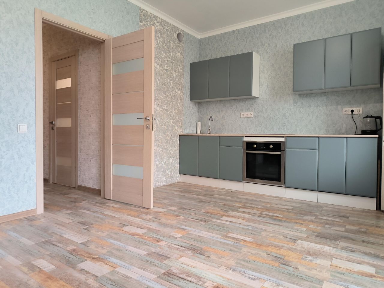 - Полы: коридор и кухня-гостиная - кафель; в комнате - ламинат.