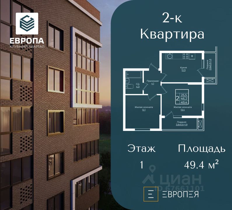 Клубный квартал Европа — уютный жилой район, гармонично сочетающий в себе яркие дизайнерские решения, прекрасную экологию и благоустроенные общественные пространства. Расположен в уникальной локации рядом с культовой "Немецкой Деревней". Всего за несколько минут вы сможете прогуляться до живописного Лебединого озера, площади с фонтаном и других знаковых мест этого уютного и развитого района. На территории квартала созданы все условия для комфортной жизни: развитая транспортная инфраструктура — как для владельцев автомобилей, так и для тех, кто предпочитает общественный транспорт. Внутри комплекса вас ждут современные детские и спортивные площадки, зоны отдыха и безопасные прогулочные маршруты. В районе установлена система видеонаблюдения, что гарантирует высокий уровень безопасности. Квартиры с смарт-планировками предоставляют полную свободу для воплощения ваших идей. Создайте пространство, отражающее ваш стиль и потребности, наслаждайтесь комфортом и индивидуальностью в каждом уголке вашей новой квартиры. Звоните прямо сейчас и станьте частью этого современного, безопасного и комфортабельного жилого квартала "Европа". Ваша новая квартира ждет именно вас! Стоимость является предварительной и может меняться в зависимости от выбранной ипотечной программы и дополнительных опций. Для уточнения стоимости необходимо обратиться в отдел продаж ГК "Европея".