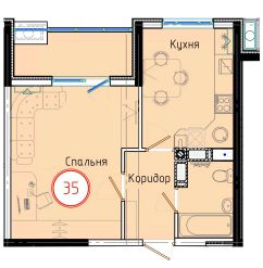 Продаётся 1-комнатная квартира в сданном доме (Дом 2/1), срок сдачи: IV-кв. 2023, общей площадью 41.6 кв.м., на 6 этаже.