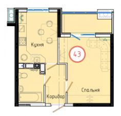 Продаётся 1-комнатная квартира в сданном доме (Дом 2/1), срок сдачи: IV-кв. 2023, общей площадью 40.1 кв.м., на 8 этаже.