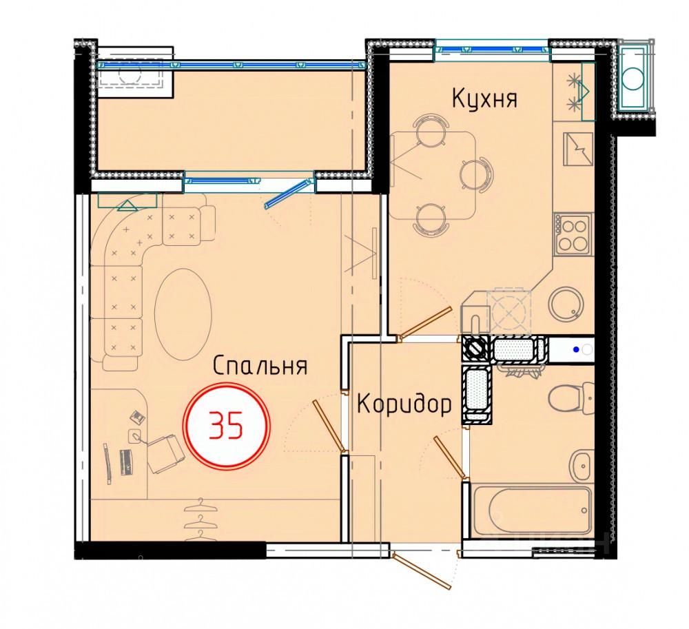 Продаётся 1-комнатная квартира в сданном доме (Дом 2/2), срок сдачи: IV-кв. 2023, общей площадью 41.4 кв.м., на 6 этаже.