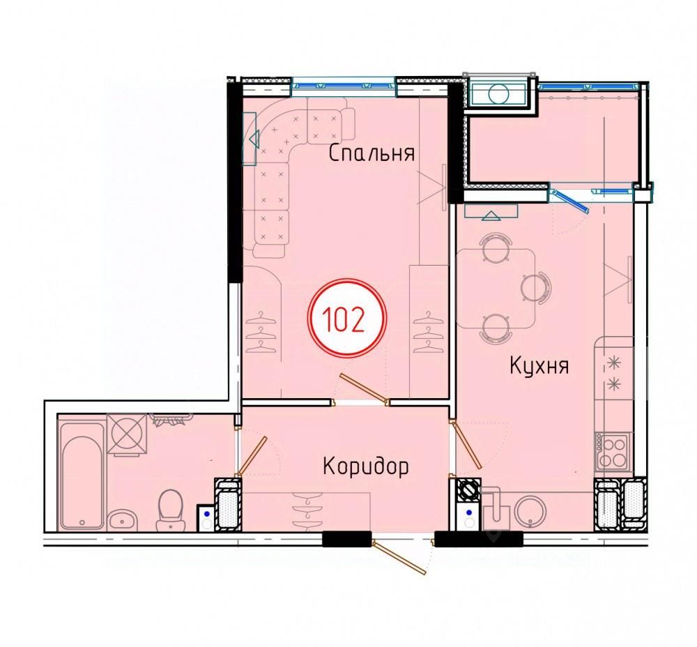Продаётся 1-комнатная квартира в сданном доме (Литер 3), срок сдачи: IV-кв. 2023, общей площадью 41.7 кв.м., на 7 этаже.